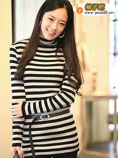 2高领条纹修身毛衣高领条纹修身毛衣,很美的一件哦,超甜美可爱的,腰带给整件YY提高了很多,非常美的一件哦。