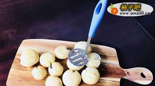 2蒸熟的小土豆轻轻按压一下