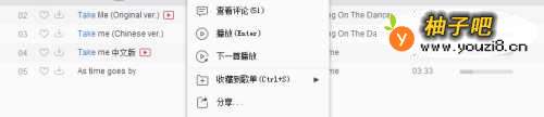 5选择其中一首点击鼠标右键显示菜单选项。