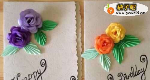 6A4卡纸或者皮纹纸对折后用花边剪刀处理一下边,如果没有花边剪刀的客友可以自由发挥用铅笔画出花纹用剪刀剪,不过有点费事。然后,在卡纸右上方或者左上方涂白胶,做好的花朵底部也涂白胶,将花朵粘在卡纸上,等待白胶干透,如果有热熔胶枪就不用等了。叶片也用白胶涂上底端,粘在花朵的下面,待白胶干了后,就大功告成了,有花边的贺卡感觉更精美。