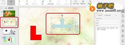 选择幻灯片中的对象元素。该对象元素预设需添加退出类型的演示动画效果。
