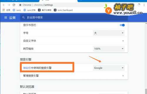 4在设置界面,找到“搜索引擎”一栏,当前使用的搜索引擎为Google。
