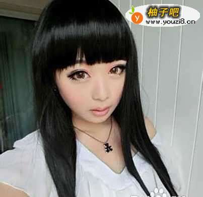 9芭芭美发造型的重点来了,黑色假发,因为模特头发是黄色的,只能选一款黑色的长直发了
