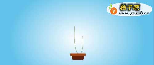 3在盆子中使用绿色画笔绘制出参差不齐的茎部;
