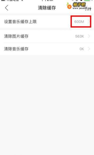 7回到 清除缓存 的页面后,就可以看到 音乐缓存的上限为600M。