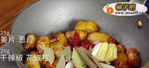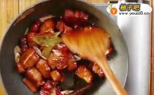 71汤匙生抽、2汤匙老抽、20g冰糖,一起翻炒均匀