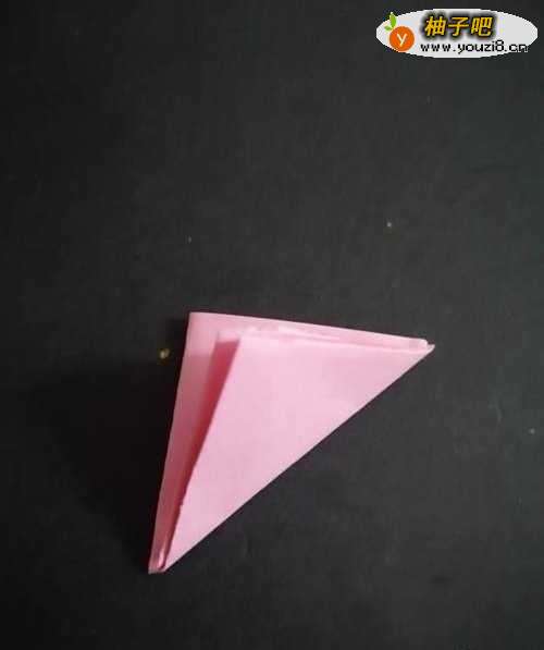4第四步,把折叠好的正方形的右下角向左上角折叠。