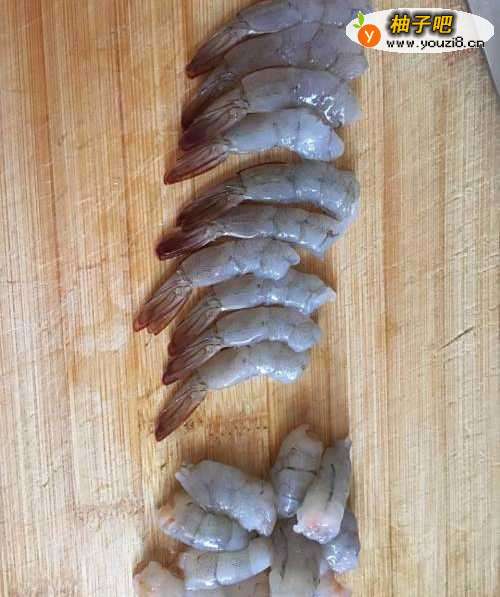 3将虾仁切除三分之一,留三分之二即可。被切下的三分之一虾仁剁成沫。