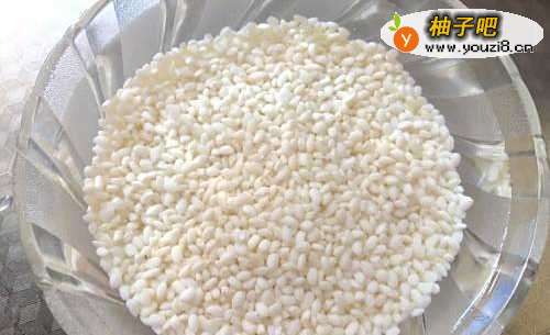 首先要把糯米洗净用水泡至少3小时,此步骤是为了缩短蒸肉丸的时间,让肉丸口感更鲜嫩。