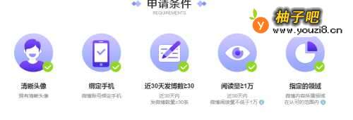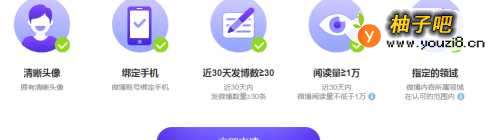 2前面几项都比较简单,简单提一下,30天发微博数大于30,阅读量大于1万,指定领域比较麻烦,需要大家的坚持,这些都是有联系的。下面开始讲解