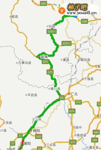 成都—G5高速—广元—G75高速—陇南—G7011高速—天水