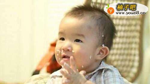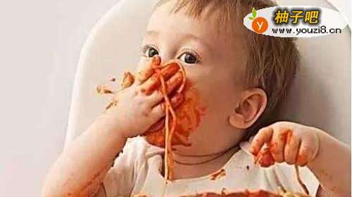 宝宝刚开始不会用勺子吃饭,更不会用筷子,只知道用手抓,刚开始的时候,可以让他用手抓,让他意识到,饿了就要吃东西才能填饱肚子。可能会把食物当做玩具玩,可能会把食物塞到满脸都是,掉衣服上,掉地上,哪里都是米饭和饭菜,没关系的,妈妈们不要太担心,就让宝宝先适应吃饭、手、嘴巴、饥饿,这几个动作都连贯起来,后面再慢慢教。