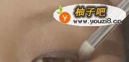 2涂抹深色眼影,一般来说涂抹大概6mm左右,且睁开眼睛能看到颜色。再睁眼 后能看到部分颜色还要继续填充,这样闭上的眼睛看起来才比较的自然,更佳调整了整个眼睛的柔和度。
