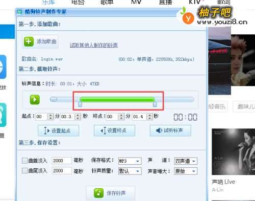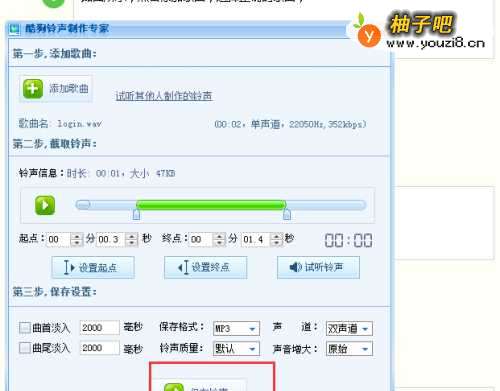 6如图所示,可以点击红框勾选的滑轮,制作称心的铃声