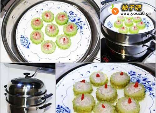 9将苦瓜放在蒸隔上大火蒸10-15分钟就可以出锅了。