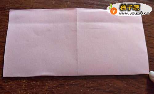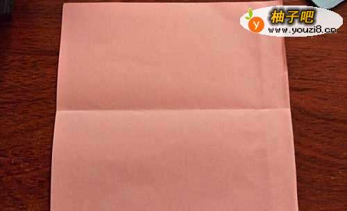 首先,准备一张正方形纸,然后对折一下。如图所示