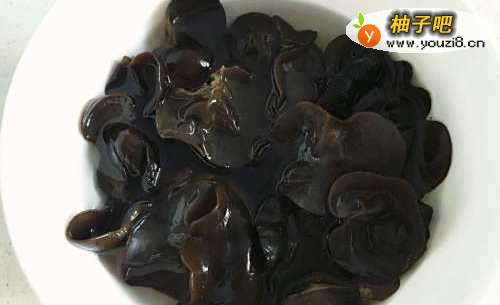 4干木耳宜用温水泡发,如果泡发后依然缩成一团就不要吃了,如果在温水中洒点盐,一小时后木耳就会快速变软,假如再加入两勺淀粉,则可去除木耳细小的杂质。