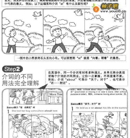3介词是用来表明名词,代词与句子中其他的此类关系的词,本书中收录了最常使用的54个英语介词,依字母顺序排列,并详细介绍每个介词的不同用法。请对照例句与图片,便能理解每个借此的正确使用方式。