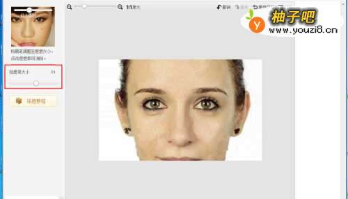 4在弹出的窗口中调整画笔大小,点击脸上痘痘明显的地方,点击应用。
