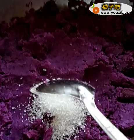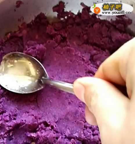 准备适量的紫薯,清洗干净,切块上锅蒸熟,压成泥;