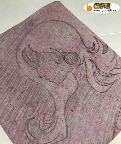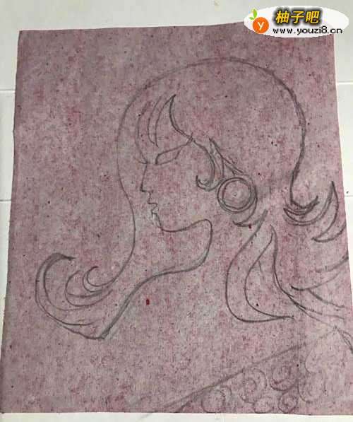 2第二步 反面朝上摆放好之后 拿起绘图铅笔先画上人物侧面头像的外线草图轮廓 包括额头 鼻子 嘴巴 下巴等等