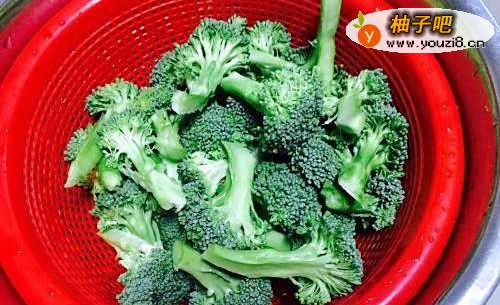 4西兰花大约焯水30秒即可捞出过凉水,沥干备用。