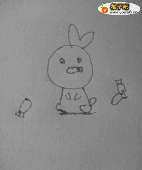 下面介绍一下吃萝卜的小兔子的简笔画。