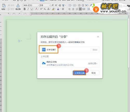 3在分享文档对话框,输入【文档名称】,点击【上传到云端】。
