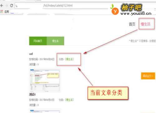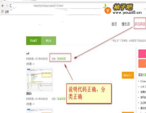 66.对比,所有栏目文章分类正确。数据动态获取当前文章分类成功。