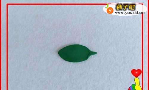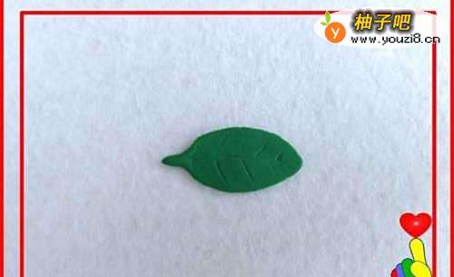 11取绿色彩泥适量,制作“树枝”,并粘合叶子。
