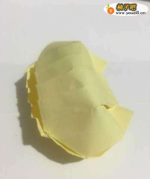 6第六步 折叠完之后竖起来 从下向上对折 然后捏着双折边 再捏出两边的突出状 最后捏出贝壳的细竖纹缕就行了