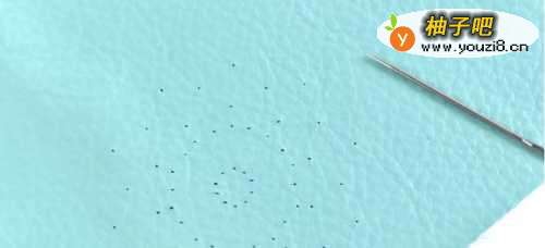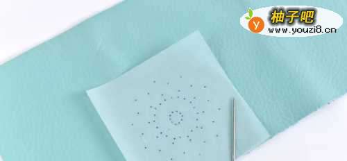 2当刺绣皮革时,缝纫所需的孔越少,缝纫就越容易。把你的图案追踪到描图纸上,然后把它放在皮革上你想要的地方。在样品中,刺绣将显示在背面,并绕到前面一点。