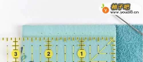 6为了将卡包的两侧固定在一起,用双针穿过标记的孔。从开口处的顶部开始,先用第一行缝纫,然后沿着这条线往回走,填补缝隙。在这个步骤中使用线程调理器也会有所帮助。