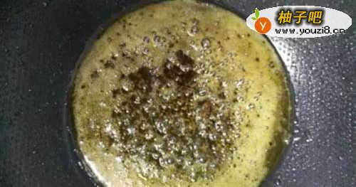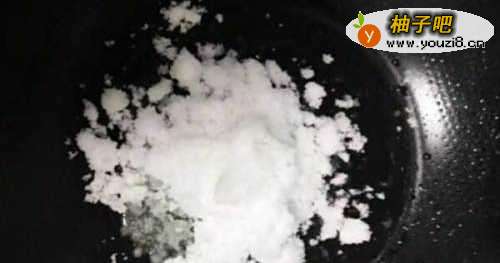 4将锅清理干净后,再在鼓励放入少量的油和白糖,下面就是熬制糖浆这个工作了。熬制糖浆的时候,建议不要用电磁炉进行,最好用天然气熬制,火候好调整。