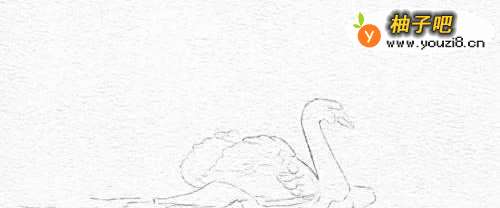 6用HB铅笔刻画天鹅的亮部颜色,轻轻地画出羽毛的形体。