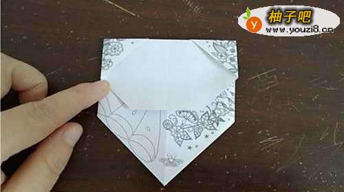 4接下来,再把彩纸上面部分向下折,如图所示。