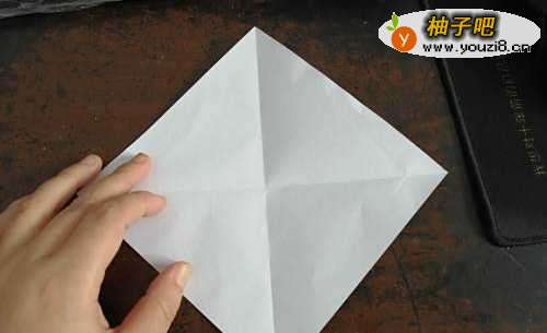先把彩纸的两角对折,如图一。把上边的角向下折,如图二。再把角向回折,如图三。