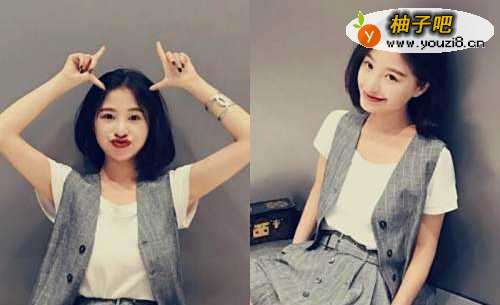 这本来是一款耳下的波波头,却在头顶扎出一个小丸子,加上二次元刘海的搭配,分分钟秒变精致小脸,且非常的活泼可爱。