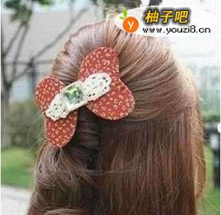 4用小夹子固定好马尾部分,再别上一个小发饰,第一款简单公主头就完成了。