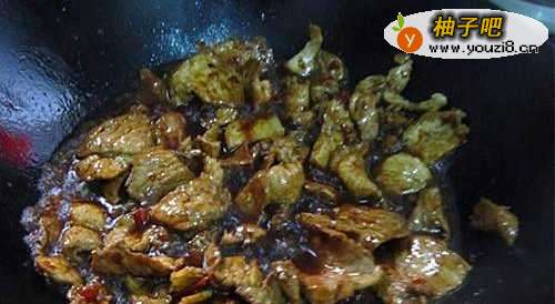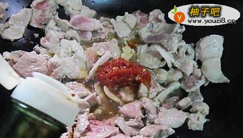 55.猪肉变白后放入豆瓣酱、少许老抽上色