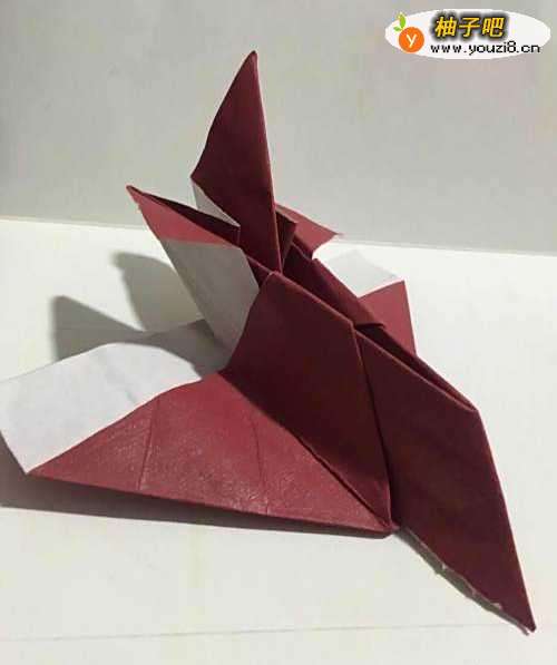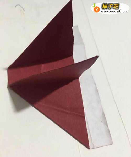 5第五步 折叠完之后取开 按折痕向里回折 然后左右折叠成为两个立起的三角