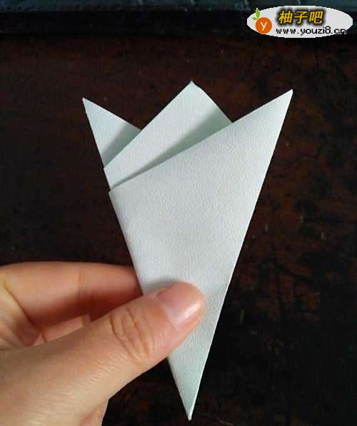 4我们把右侧的角向左折,折过去的的角要略低于右边新形成的角。