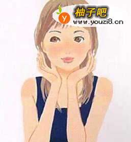 1、整个脸显得比较圆的脸型特点:脸比较宽,眉峰到下吧的距离比例较短,脸颊也看起来很短。化妆方法:首先提升眉峰高度,将眉毛角度提升10°左右,然后沿着纵长的方向给双颊涂上腮红。最后,可以高亮T区,营造中心感。