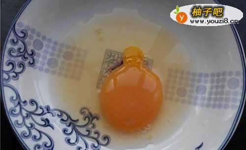 3鹅蛋打入碗里。