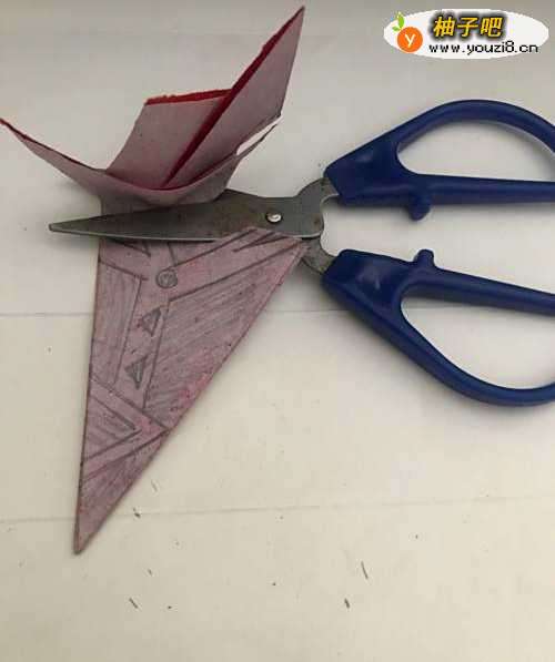 6第六步 全部画完之后 再涂实一遍要剪去的部位 然后拿起手工剪刀 剪去外面周围多出来的一部分彩纸