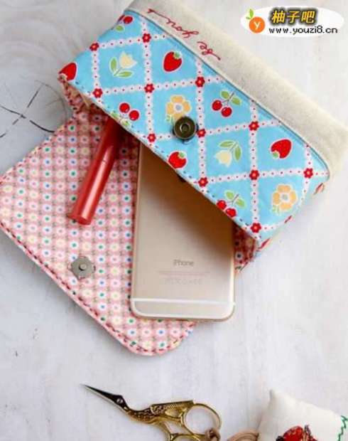 14再缝上一个磁扣,这样我们的拼布包就做好啦。