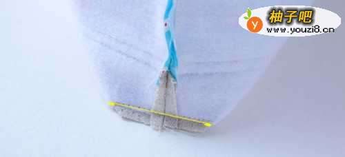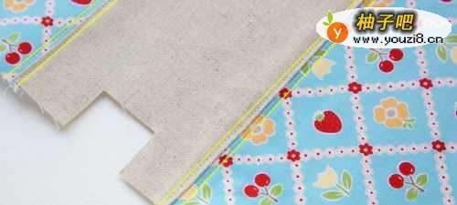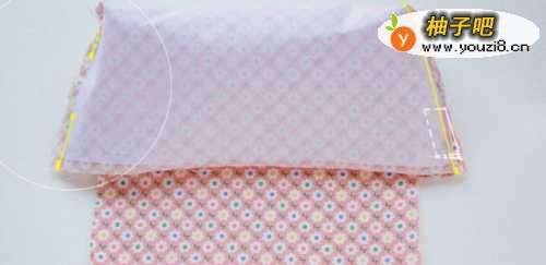 3按照下图摆放好布料,沿着黄色画线缝合。
