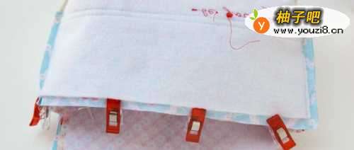 11把里布套入表布,开后位置用夹子夹住,然后缝合在一起。