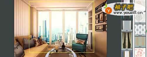 6以基数少的颜色和基数多的颜色分别为参考,选取与沙发椅同色系的窗帘,如下图一,再选取与沙发墙壁同色系的窗帘,如下图二,对比看效果,明显会觉得绿色窗帘更加适合家中,有其他喜欢的窗帘也可以点击看看效果(窗帘素材可以自由添加入软件)。