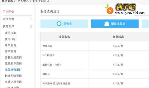 5如果对自己当前的套餐不够满意,可以点首页最上面的“个人中心”,然后进入个人业务退订项目中,查看业务的消费情况,进行选项退订或增添。